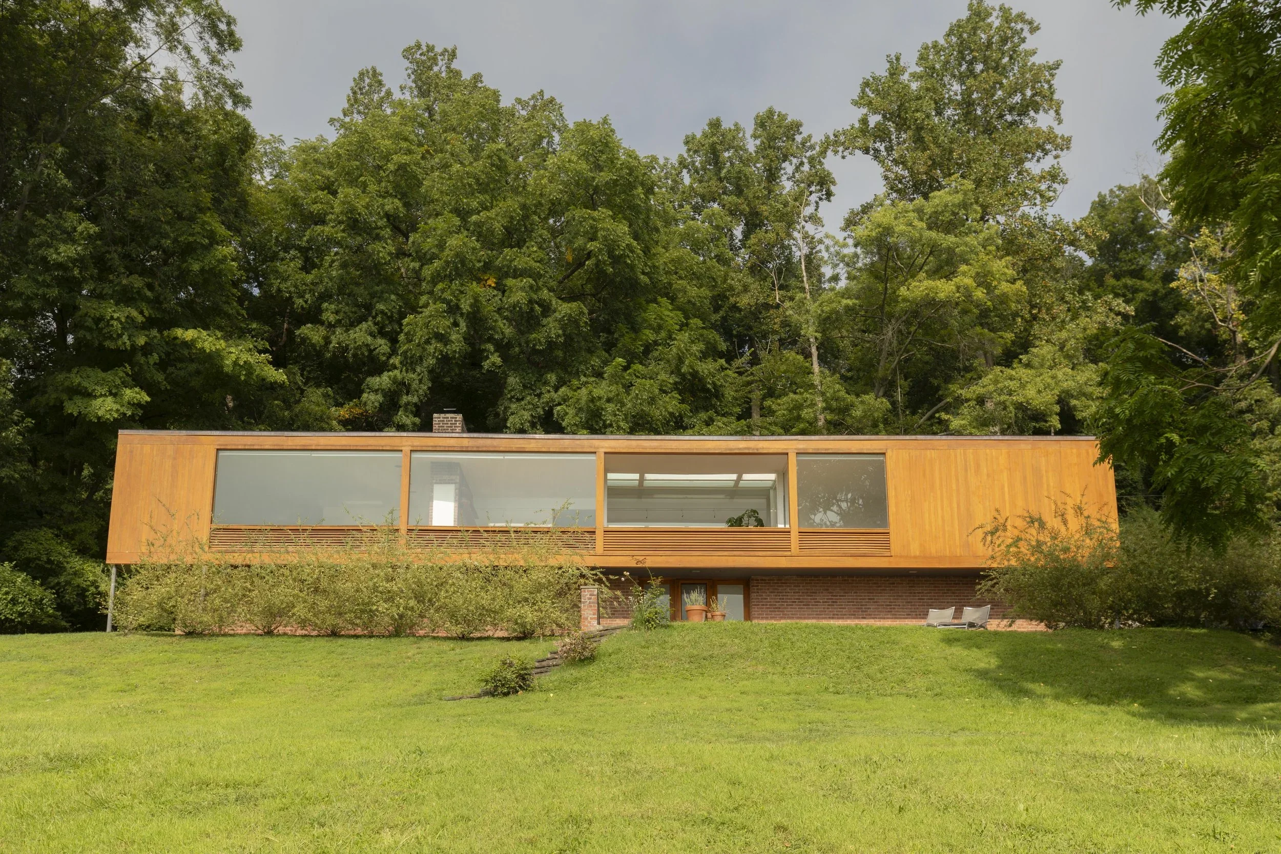 Commissioned by Benjamin V. Wolf, the residence embodies Johnson's signature style, featuring an open floor plan and expansive glass walls that offer panoramic views of the Hudson River.